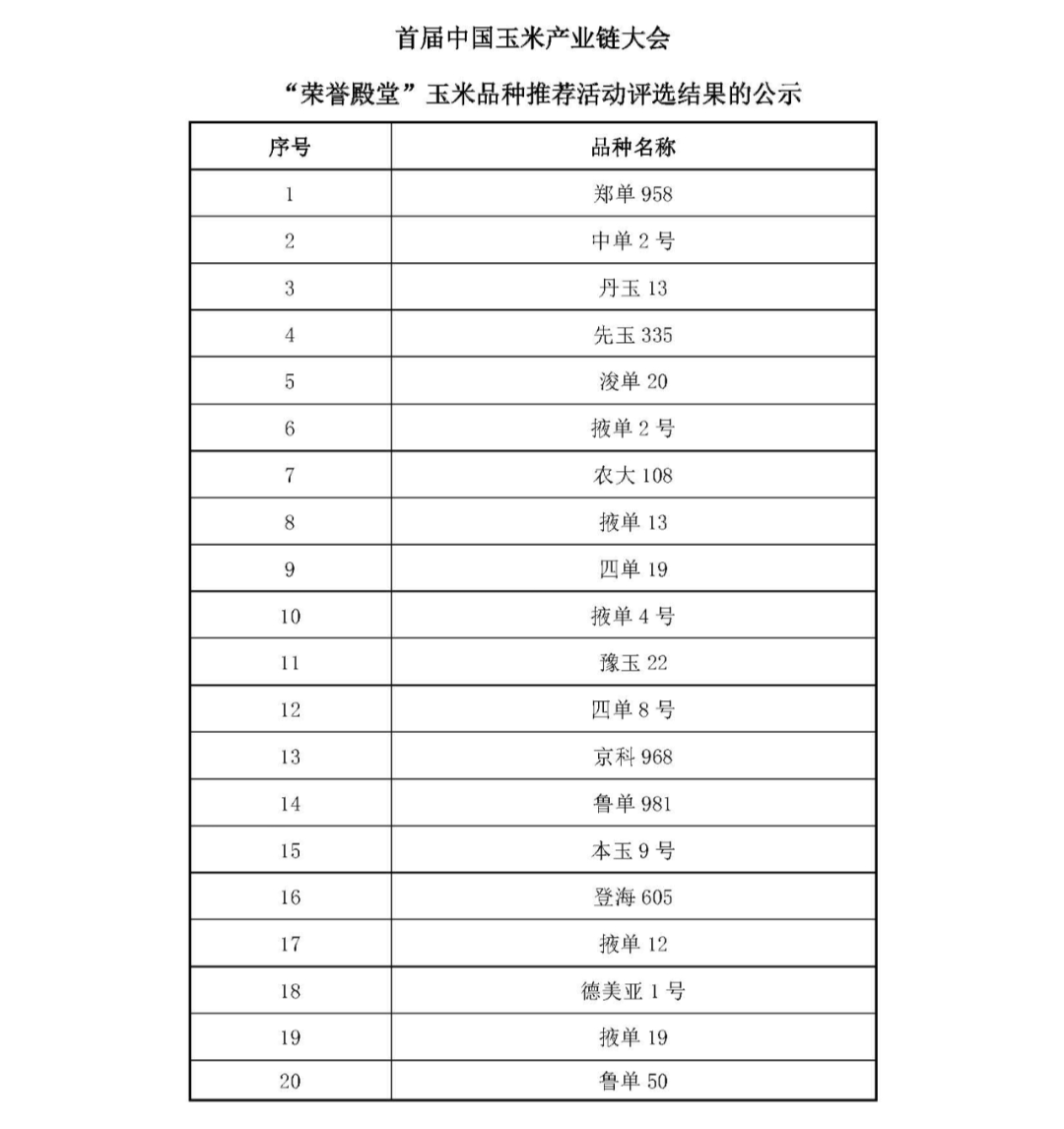 20个“荣誉殿堂”玉米品种公示!都有哪些?