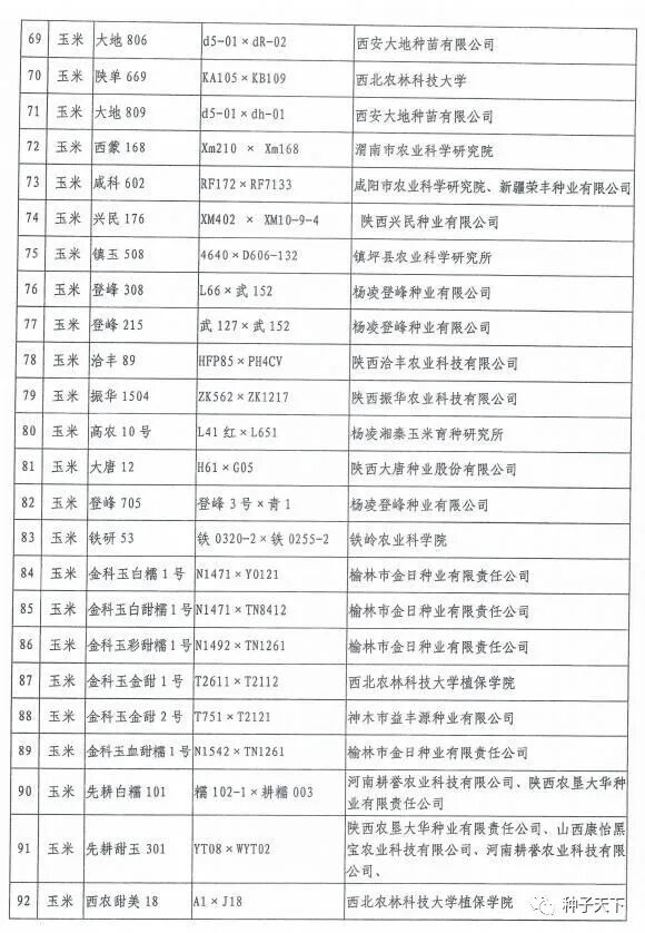 关于2020年陕西省主要农作物审定品种名称等信息的公示